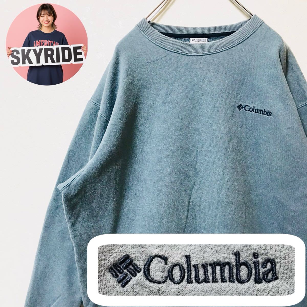 - Y2K 美品 Columbia コロンビア スウェット 刺繍ロゴ XL ブルー コットン混 ビッグシルエット 重ね着 通年着用可 #TT0387
