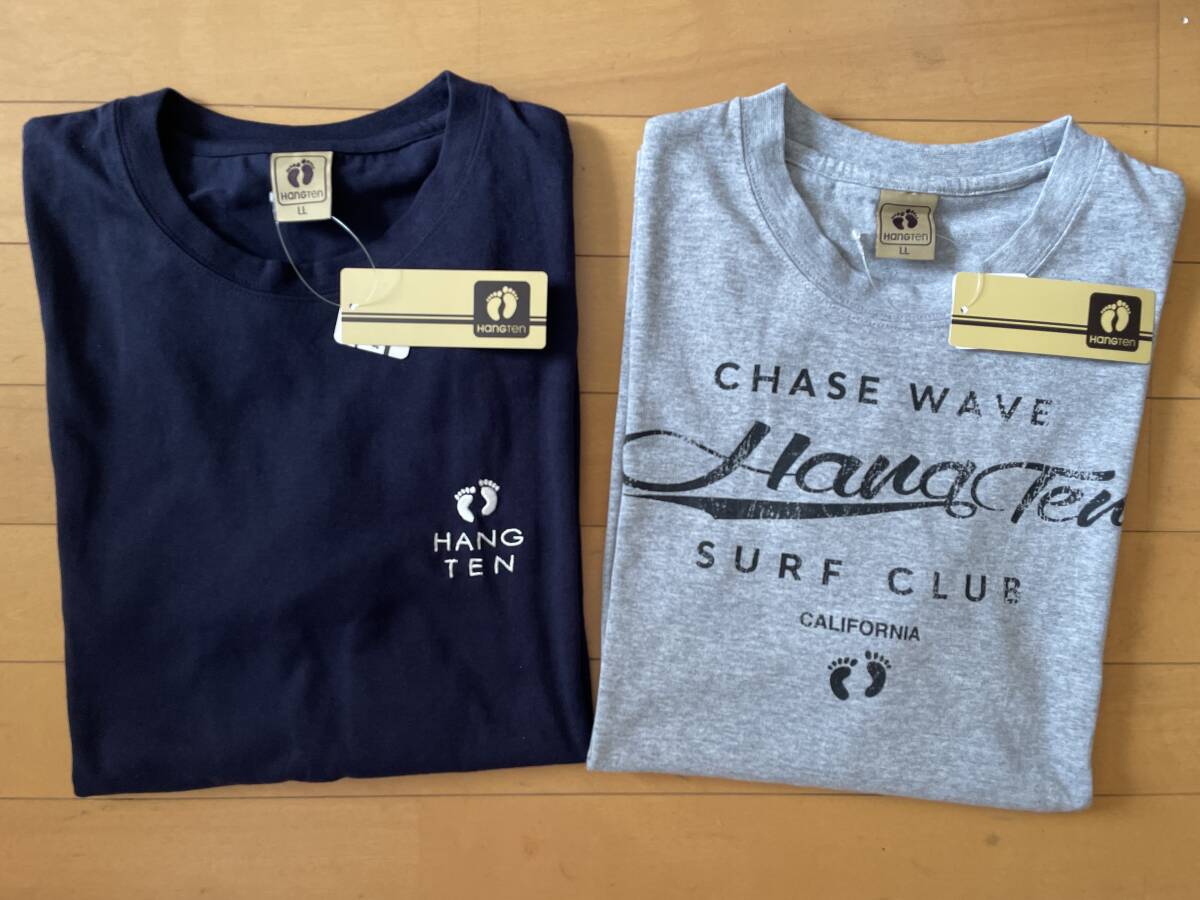 - 新品未使用 送料込み LL 2枚 HANGTEN ハンテン 長袖Tシャツ 刺繍 ネイビー グレー ロンT メンズ 即決