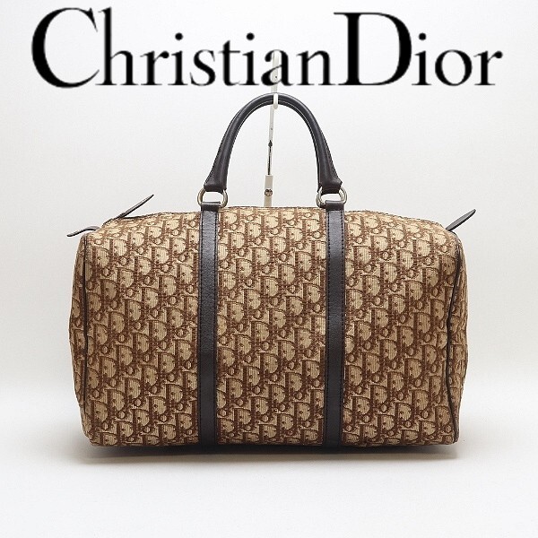 - 【HA814】ヴィンテージ◆Christian Dior クリスチャン ディオール キャンバス×レザー トロッター柄 ボストン ハンド バッグ