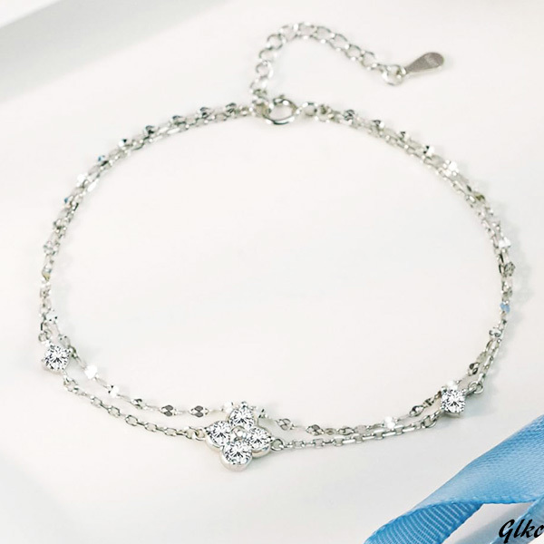 > 【2連デザインが手元に華やかさと立体感を与える】 ブレスレット オパール ローズクォーツ クローバーモチーフ 幸運ジュエリー ギフト