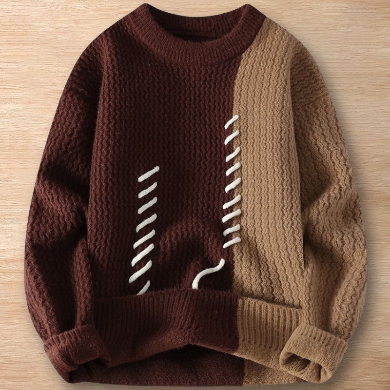 - Y272-2XL ブラウン 新品DCKMANY ウール混 セーター ラウンドネック 編みニット 配色 厚手 暖かい 長袖 メンズ プルオーバー 秋冬トップス