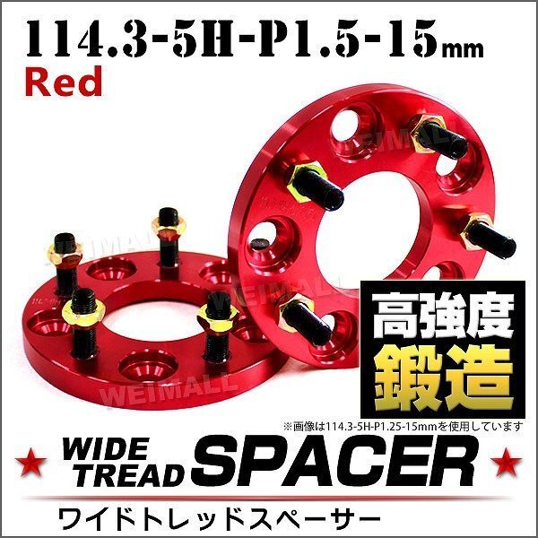 - Durax正規品 ワイドトレッドスペーサー 114.3-5H-P1.5-15mm ナット 赤 2A スペーサー 5穴 トヨタ 三菱 ホンダ マツダ ダイハツ 2枚セット