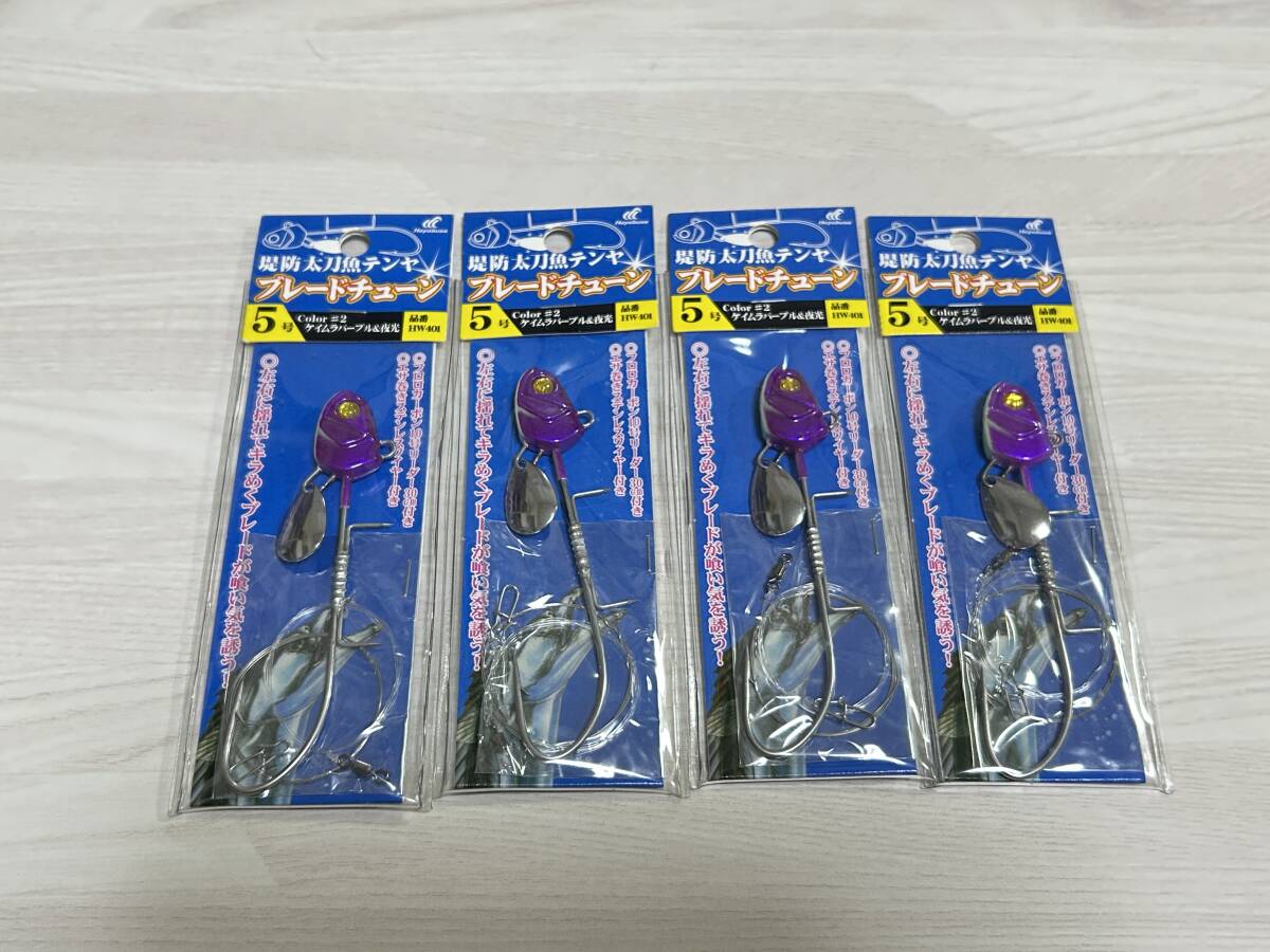 - B■■ 新品 ハヤブサ 堤防 太刀魚テンヤ 5号 ブレードチューン 同色4個【ケイムラパープル&夜光】タチウオテンヤ Hayabusa ■■K2.06