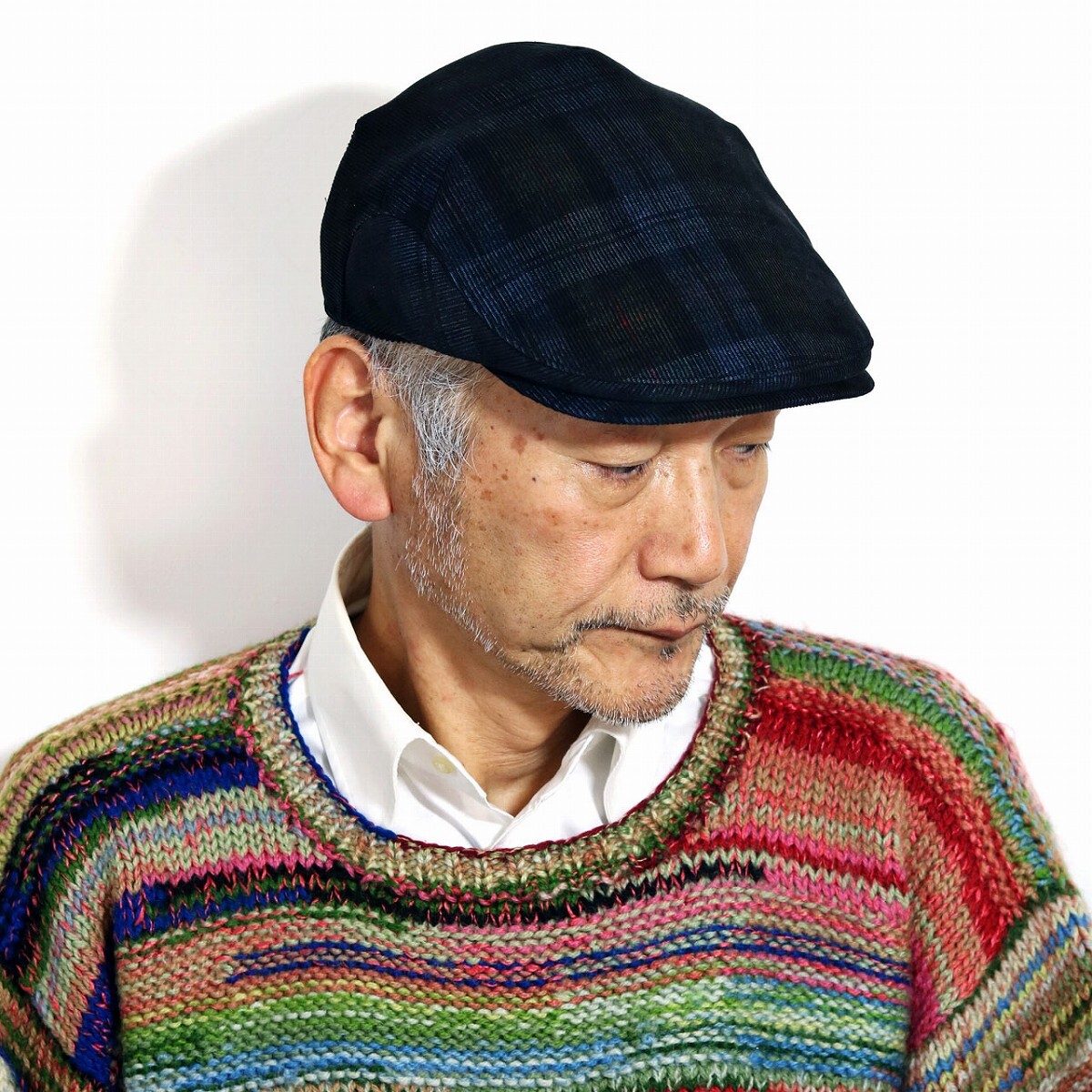 - [ M(約56cm) ] ハンチング コーデュロイ チェック柄 ドゥカ・ヴィスコンティ イタリア生地 STETSON ダークチェック ブラック