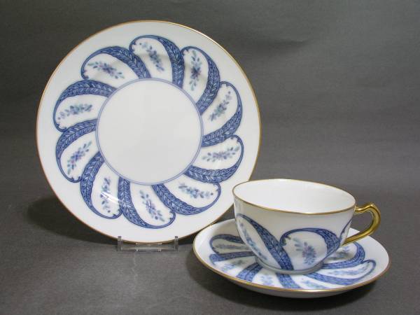 - ◎99,000円の品 大倉陶園 呉須更紗 カップ&ソーサー・20cmケーキ皿セット◎