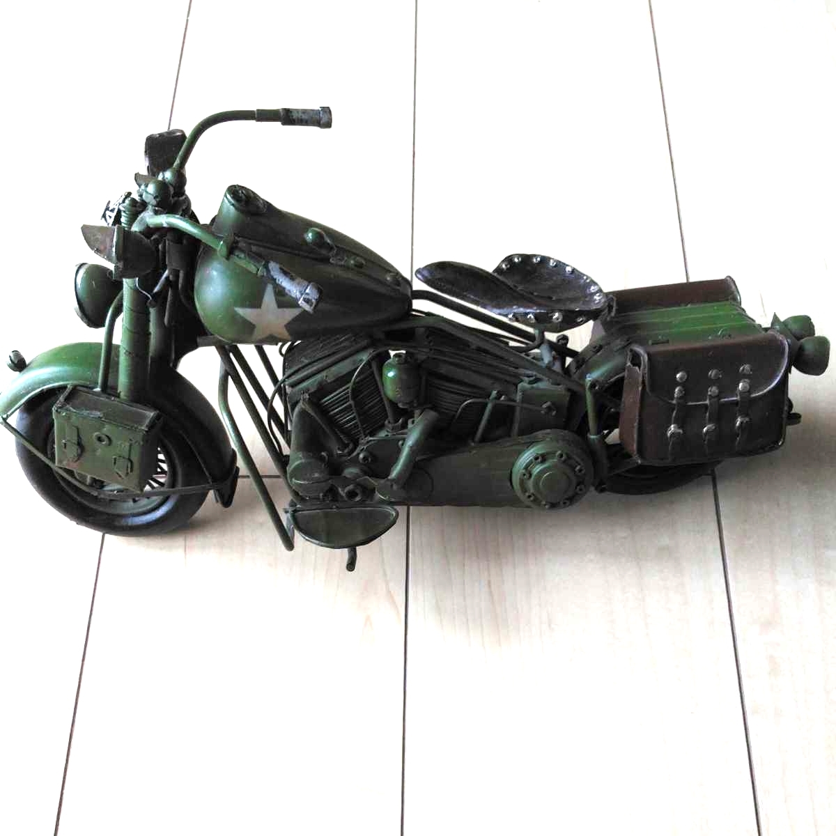 - ■『金属製草色・燃料Tank★Markの軍用Bikeの置物』1台。全長36㎝。Handle幅12.5㎝。車高17.5㎝。重さ1.3㎏。Militaryに関心有る方に…。