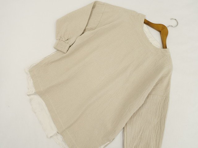 > 美品 ザラ ZARA ドロップショルダー 長袖 ラウンドネック フェイクレイヤードカットソー USA:XS-S ベージュ