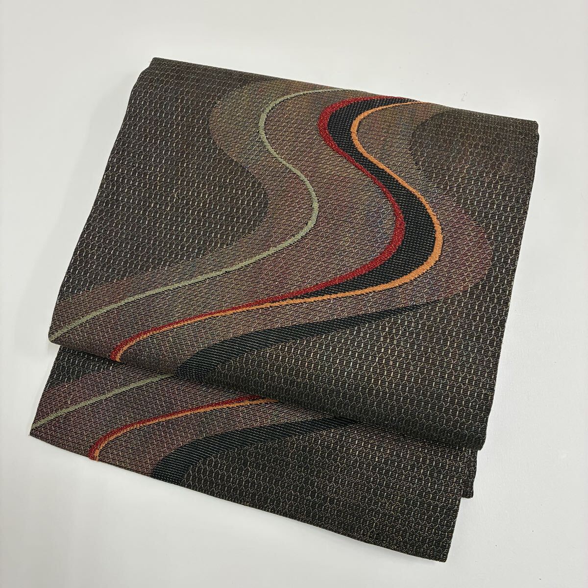 - 名古屋帯 正絹 流水模様 モダンな加工 九寸 F-333