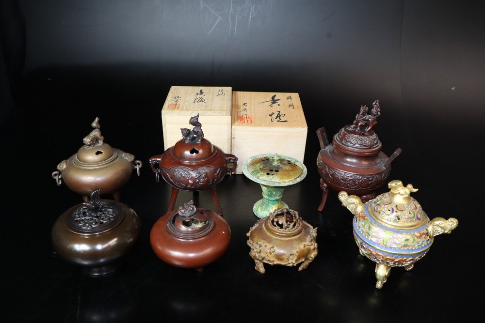 - 【江】吉秀 清雪 幸雲 他 香炉 8点まとめ 銅製 金彩 透かし彫 共箱複数有 古美術品(茶道具香道具仏具)X1857 CTDByiur