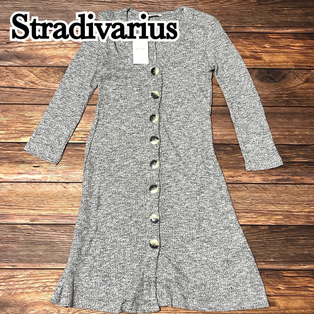 - 新品 未使用 Stradivarius ストラディバリウス ワンピース ニットワンピース 長袖 ロング丈 カーディガン 2WAY レディース グレー L