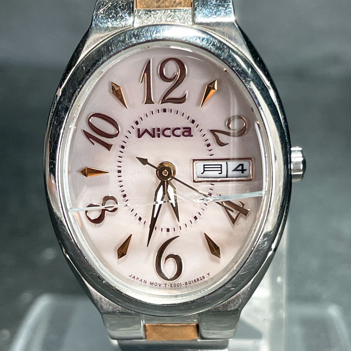 - CITIZEN シチズン Wicca ウィッカ E001-S079713 腕時計 アナログ ソーラー 3針 カレンダー ピンク文字盤 メタルバンド シルバー オーバル