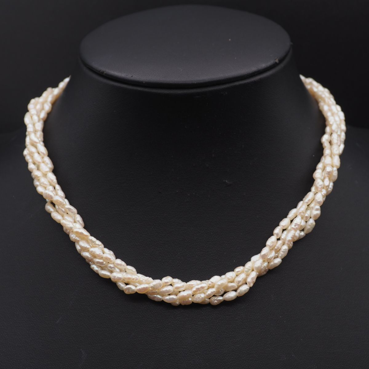 - G786 淡水真珠 パール SV刻印 ネックレス 5連 デザイン シルバー 6月誕生石
