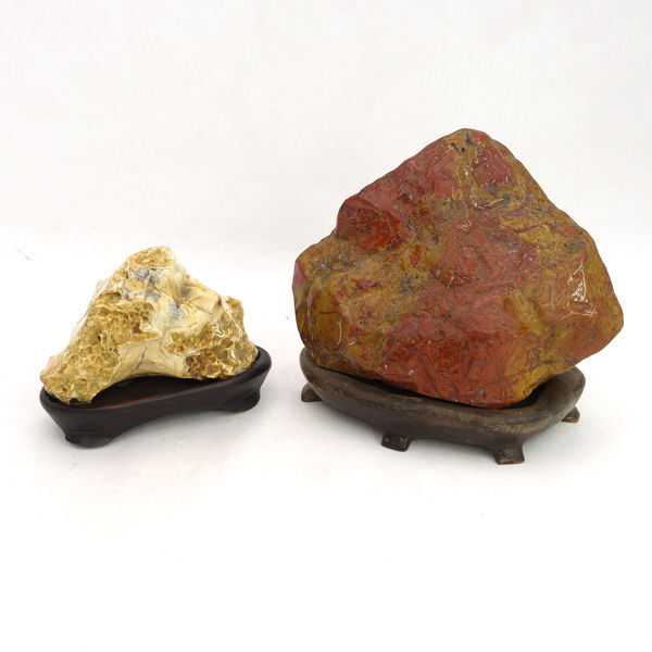 > ★ 佐渡赤玉石 鑑賞石 赤石 原石 台座 重量 約2.35kg 盆栽 盆石 自然石 置物 天然石 (0220538043)