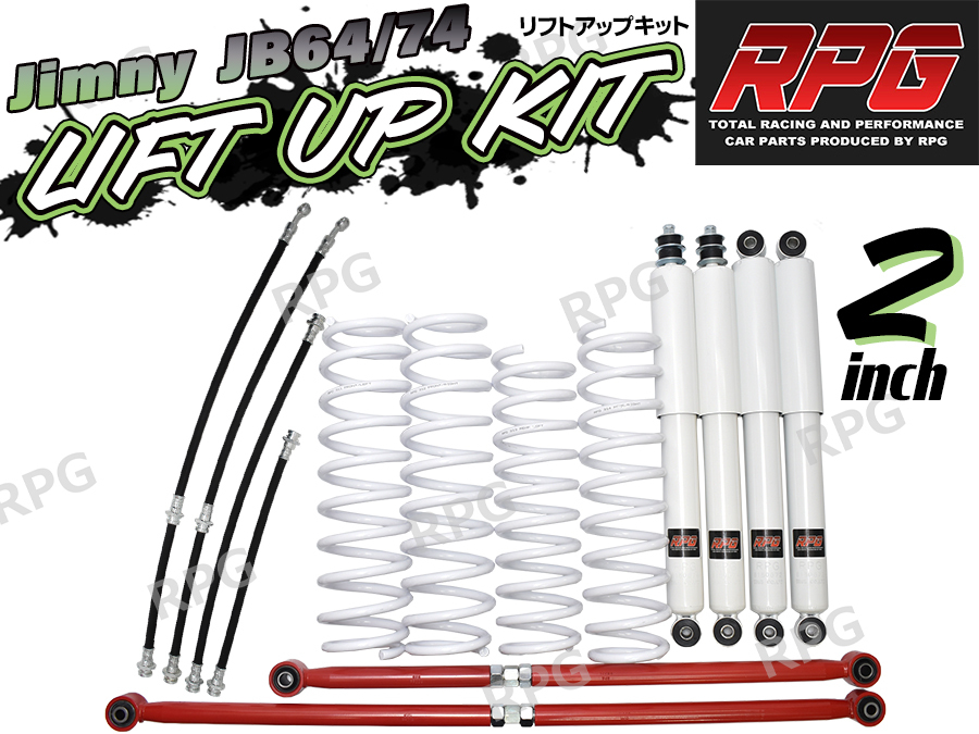 > ジムニー JB64W JB74W 2インチ リフトアップキット RPGロングショック白 ラテラル赤 コイル白 ロングブレーキホース付き