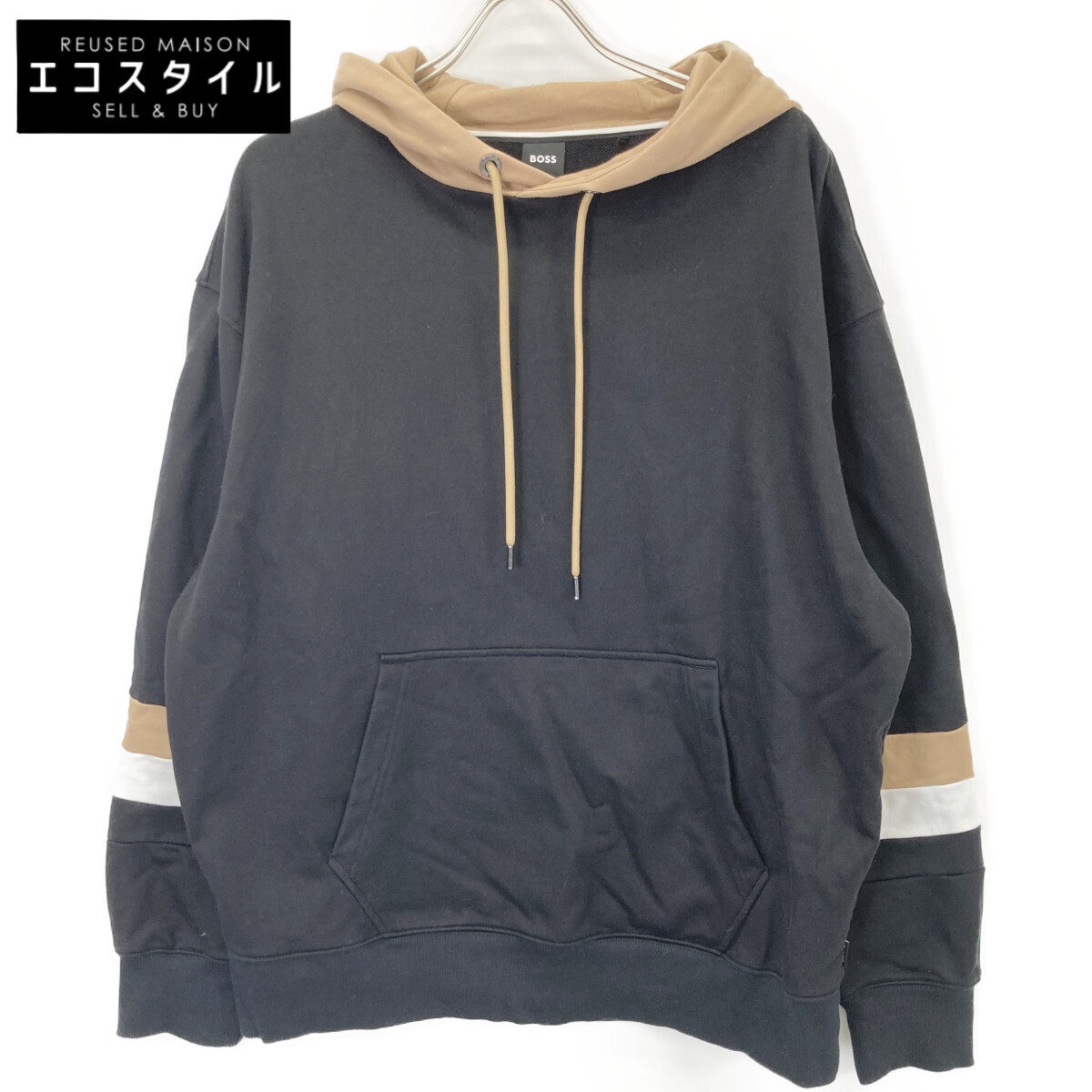 - BOSS ボス ストライプアーム フーディ トップス XL ブラック×キャメル メンズ