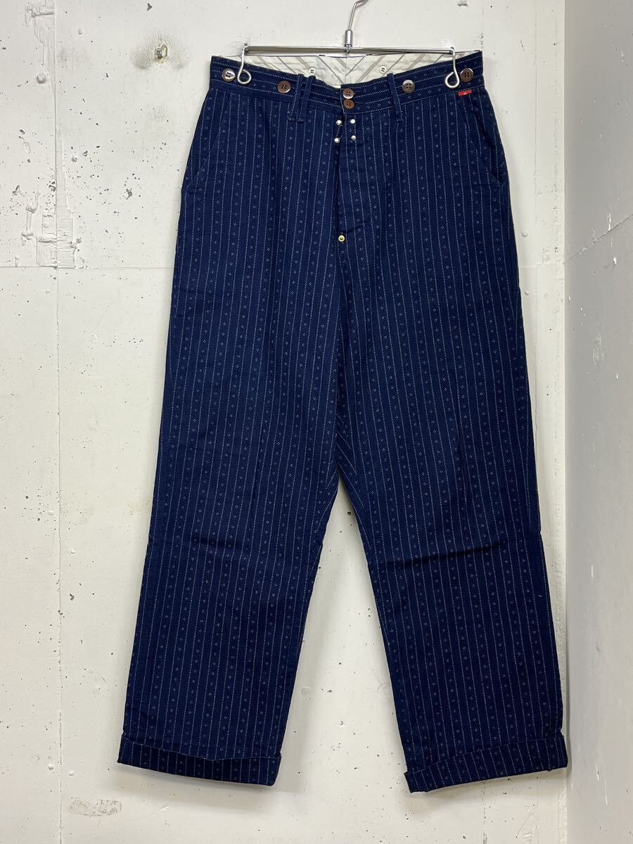 - 美品 ANACHRONORM インディゴ ワバッシュストライプ シンチバック コットンパンツ w30 紺 アナクロノーム