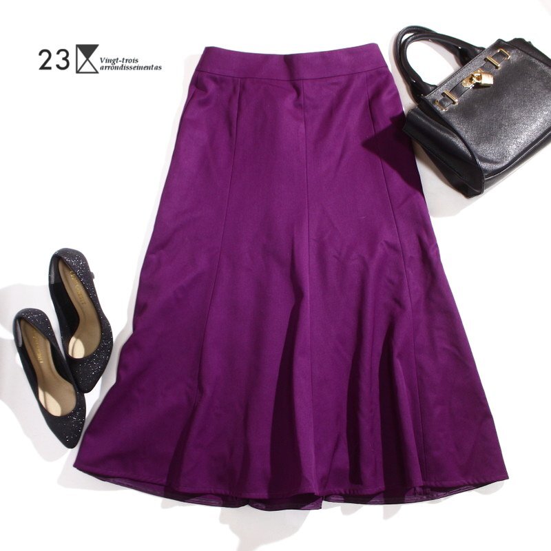 - 美品 23区 株) オンワード樫山 秋 冬 ウール100% ロングフレアスカート 7号 36 スカート ミセス オフィス ミモレ丈 パープル 上質素材