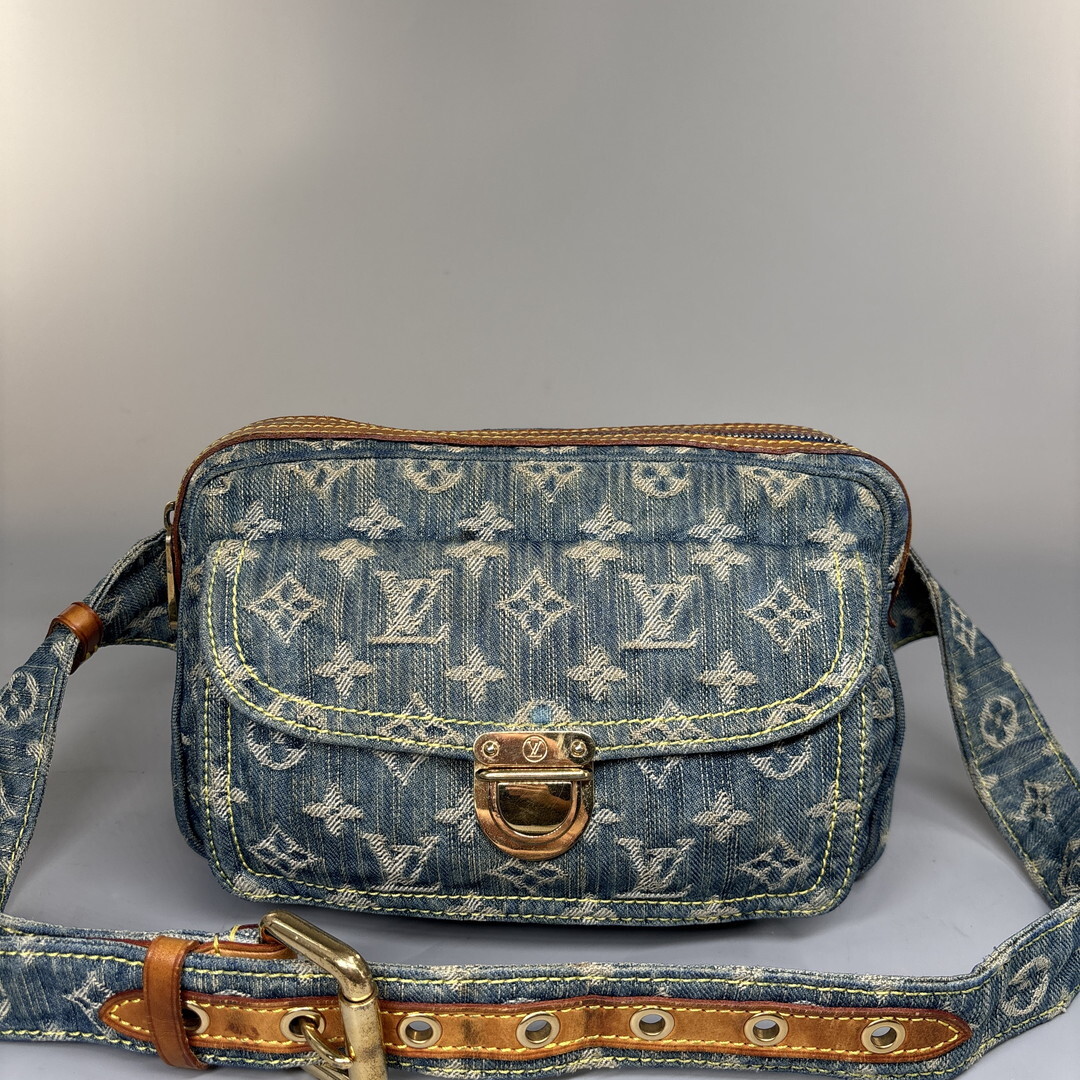> 1円 極美品 Louis Vuitton ルイヴィトン バムバッグ ボディバッグ M95347 モノグラム デニム ブルー系 メンズ レディース ヴィンテージ