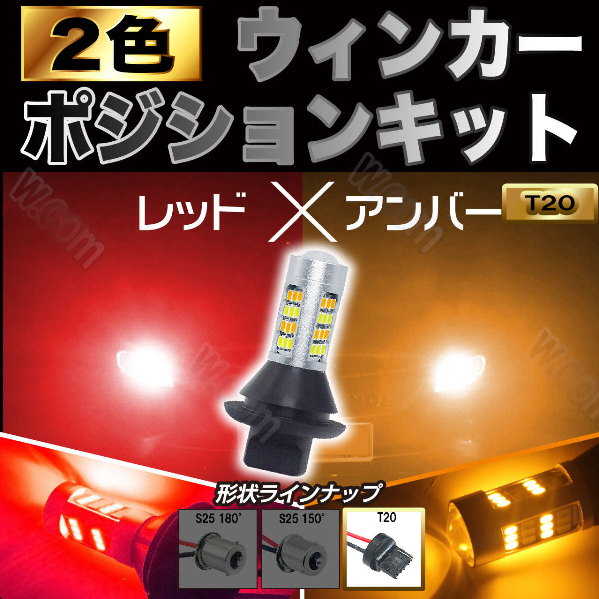 > レッド&アンバー ウィンカーポジションキット T20 テールにも可 ウインカー ピンチ部違い対応 2色 爆光 高輝度 汎用 新品