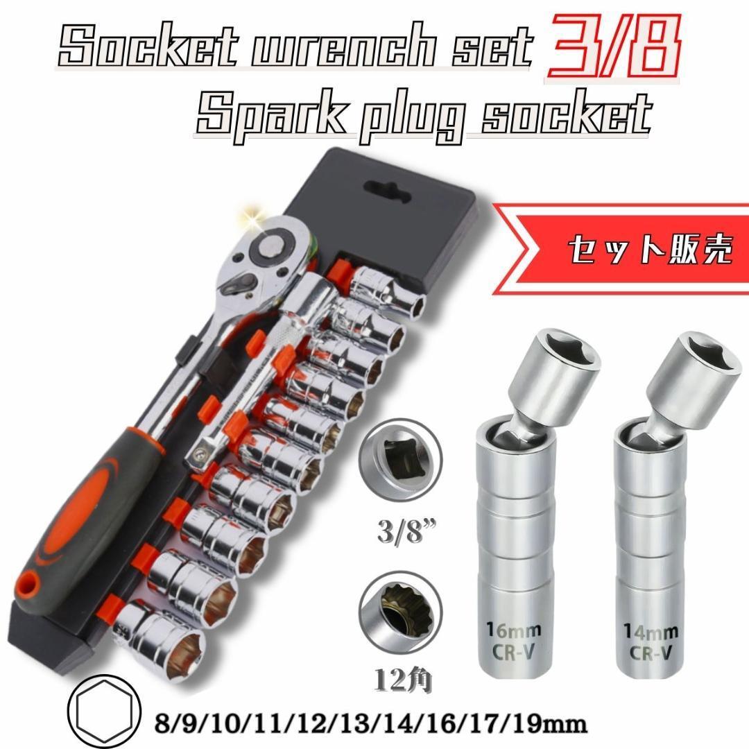 - ソケットレンチセット 12点セット ラチェット 3/8 ソケットセット ラチェットセットスパークプラグソケット 14mm 16mm 3/8