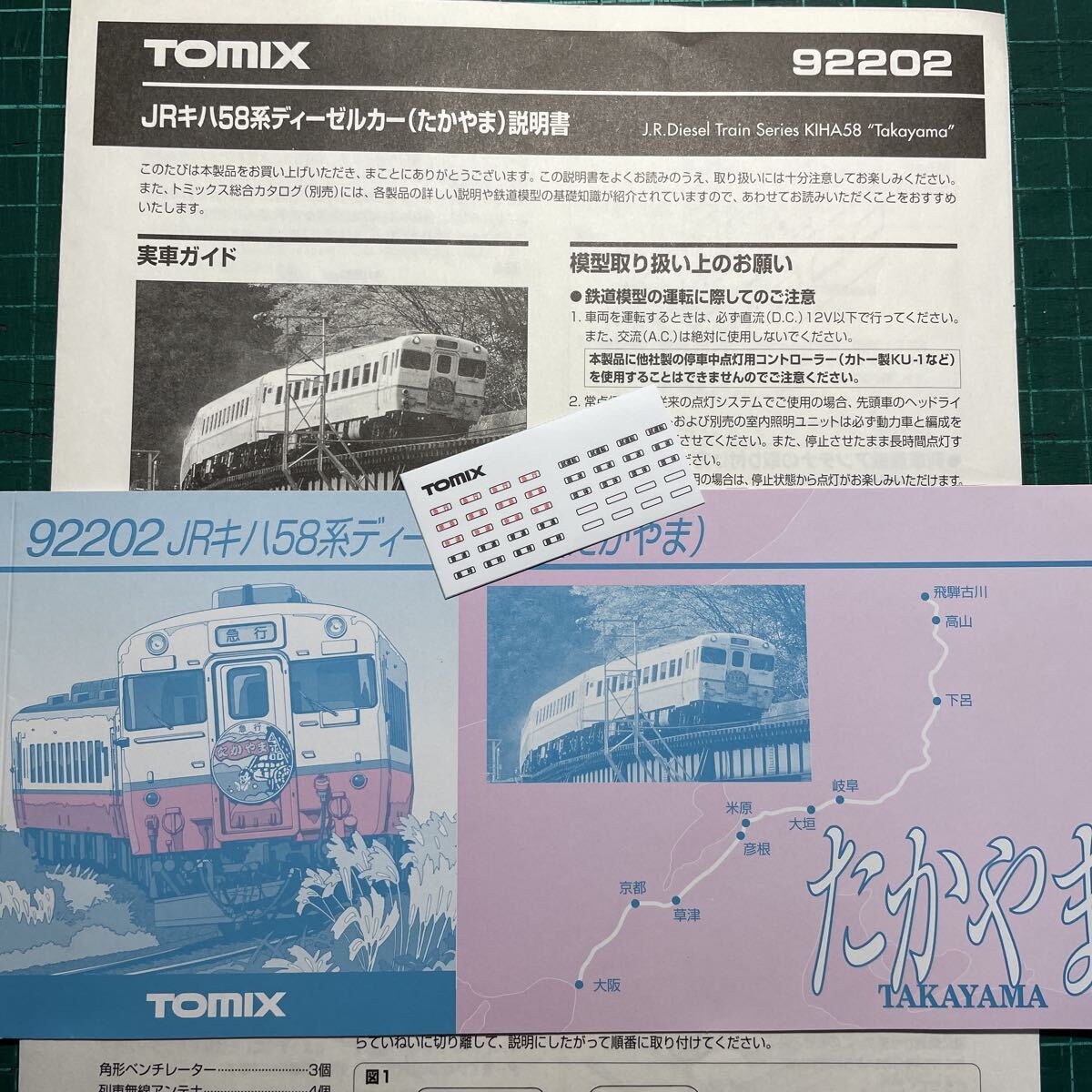 > tomix トミックス 92202 キハ58 たかやま【説明書&スリーブ 行先表示シール】#ひだ#キハ82#キハ85#キハ8200#kato#381系#HC85