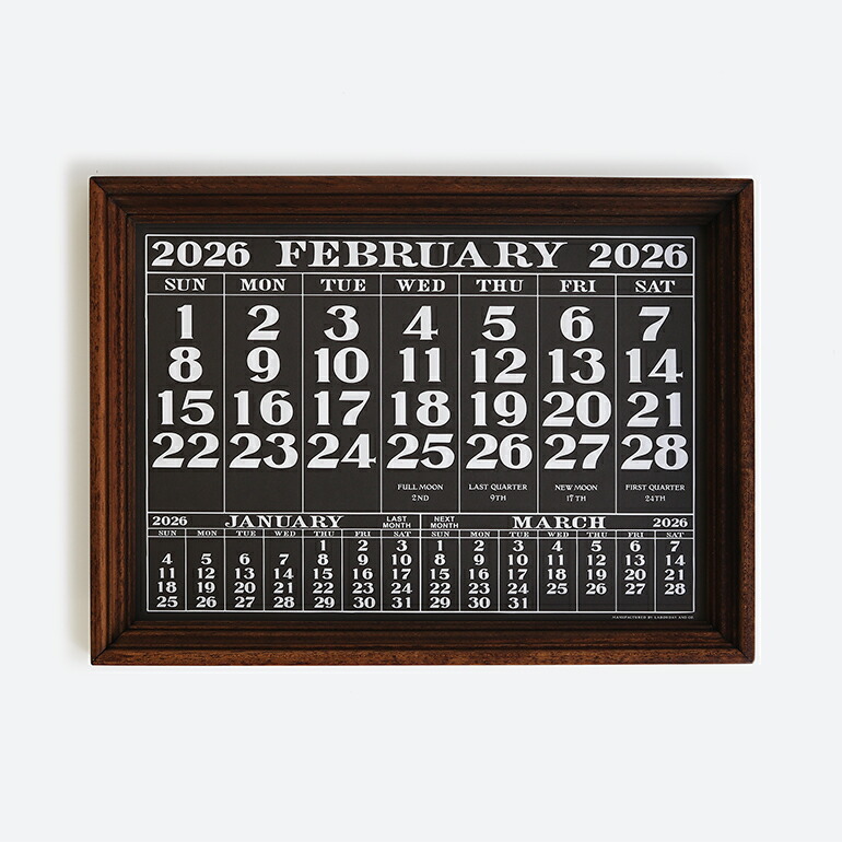 - カレンダー 2026年 壁掛け ウッドフレームセット アメリカン ヴィンテージ調 タイポグラフィ LABOR DAY レイバーデイ ORIGINAL CALENDAR
