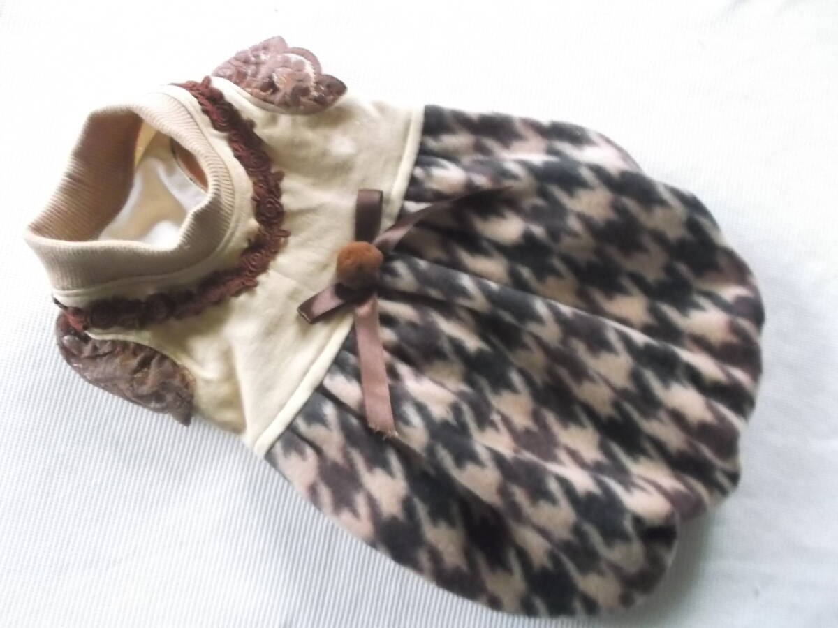 - ★胴38cm★フリース千鳥格子のバルーンワンピース