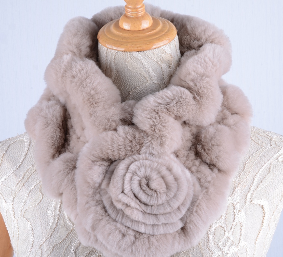 - 新品◆お花デザイン★上品なレッキスの編込み マフラー★★/毛皮 リアルファー