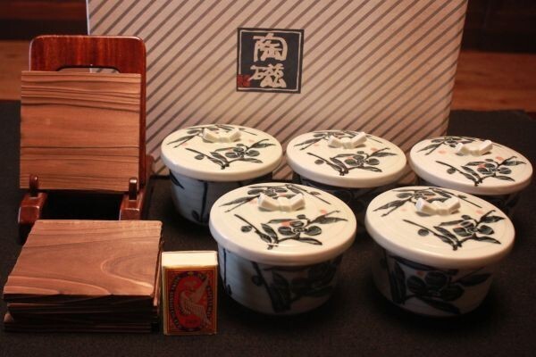 - 【新品未使用】★美品 贈答品『MARUKO 草花文グラタン蒸し碗5客セット』茶碗蒸し★検:(初だし/昭和/レトロ/和風/当時物)60917A