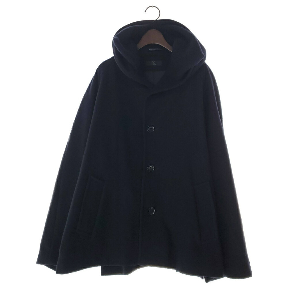 > ◆美品◆ ワイズ Y's ウール フーデッドコート メンズ ネイビー size2 [Y01807]