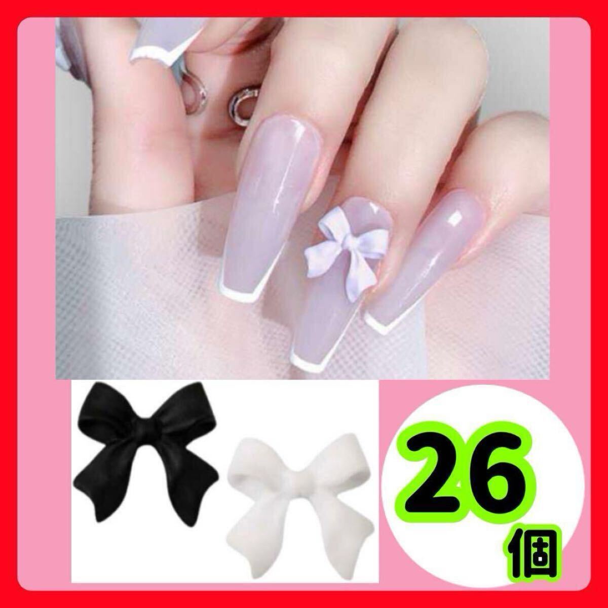 - 26個 ネイル パーツ リボン デコパーツ ホワイト ブラック 白 黒 、