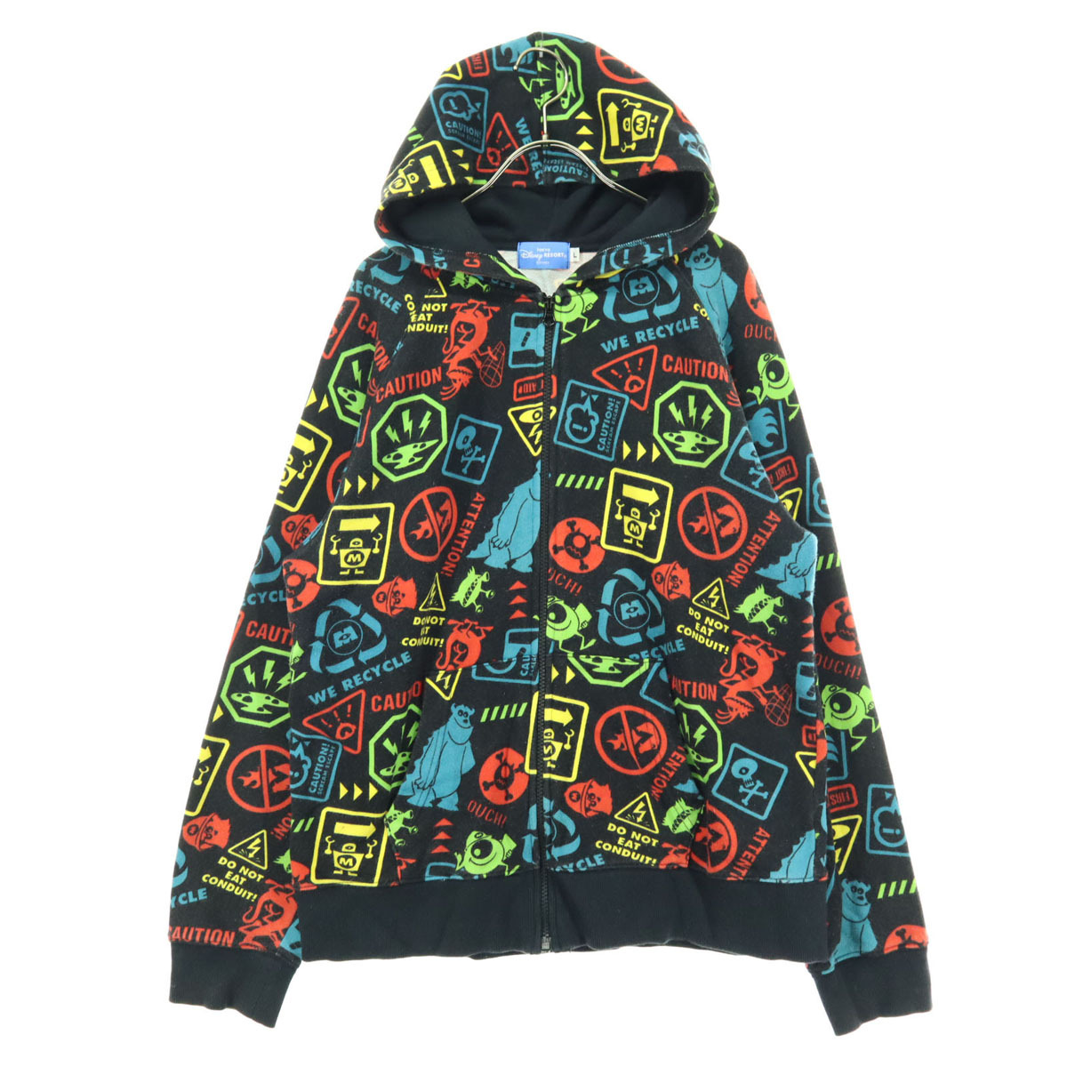 Disney ディズニー 総柄 長袖 ジップパーカー L ブラック メンズ