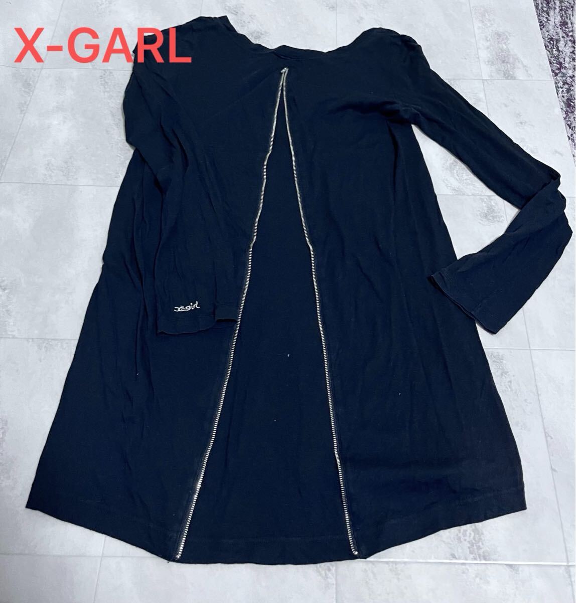 - エックスガール X-GARL デザイン長袖カットソー ロンT サイズ2 黒 ブラック