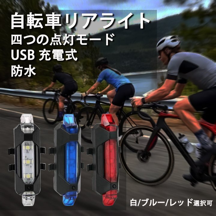 - 2個 自転車 LED テールライト セーフティーライト リアライト USB電池式 コンパクト 軽量 防水 工具不要で取り付け 自転車テールライト