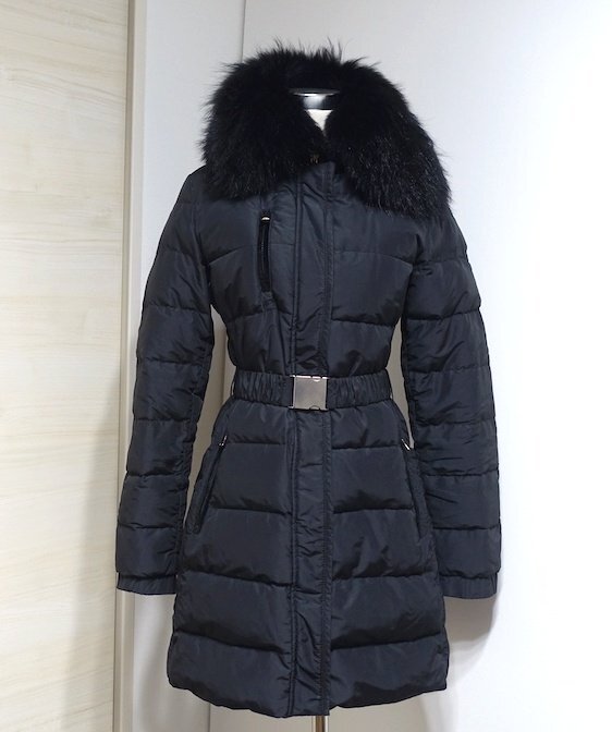 - 11AW 美品 ETRO エトロ ファー付 ベルテッド ダウンコート ポリエステル ブラック レディース 42 ジャケット アウター