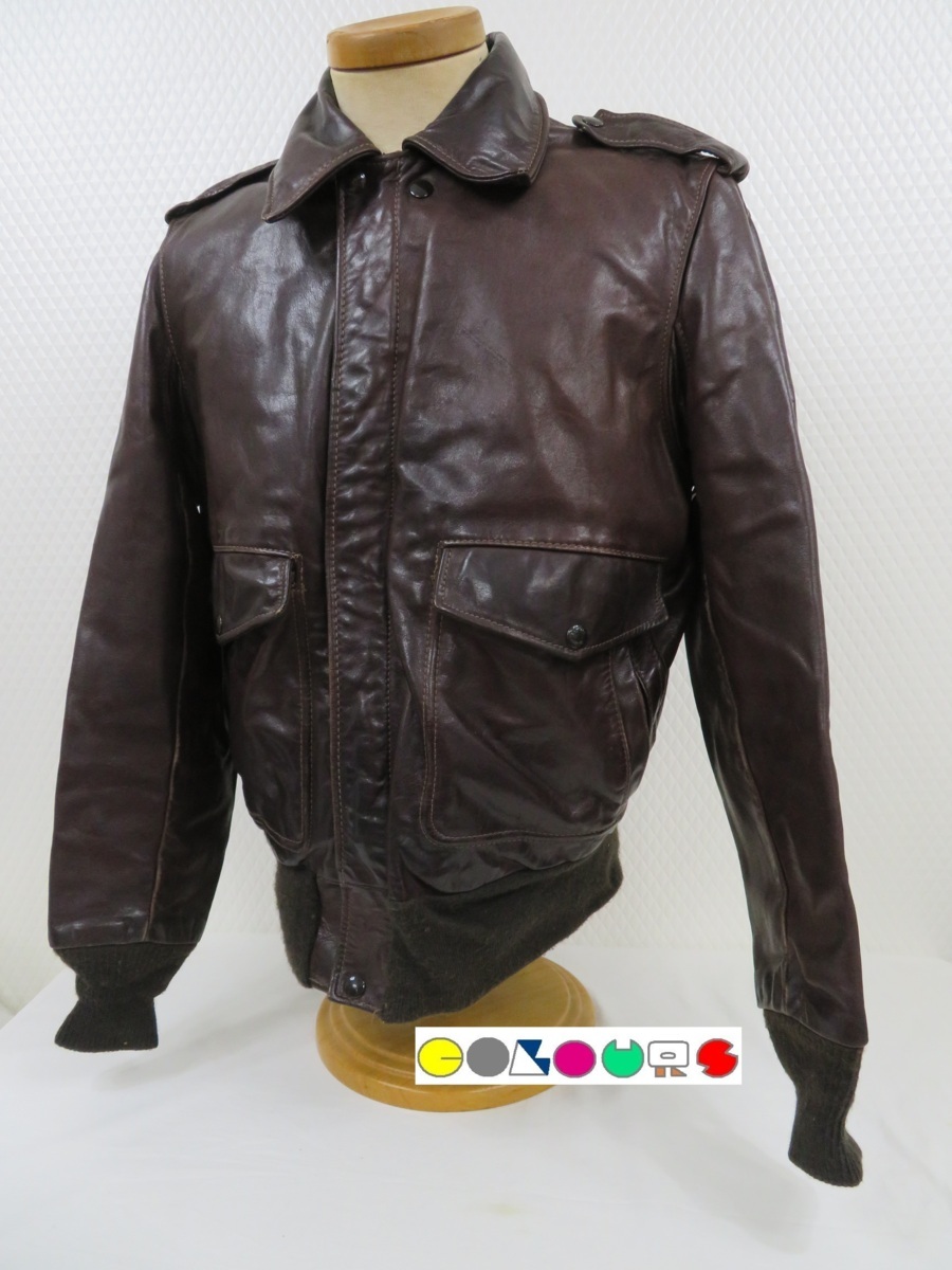 > 〔COLOURS〕 ヴィンテージ■革ジャン■SCHOTT■40■ダークブラウンカーフ■ボア襟・ライナー付き