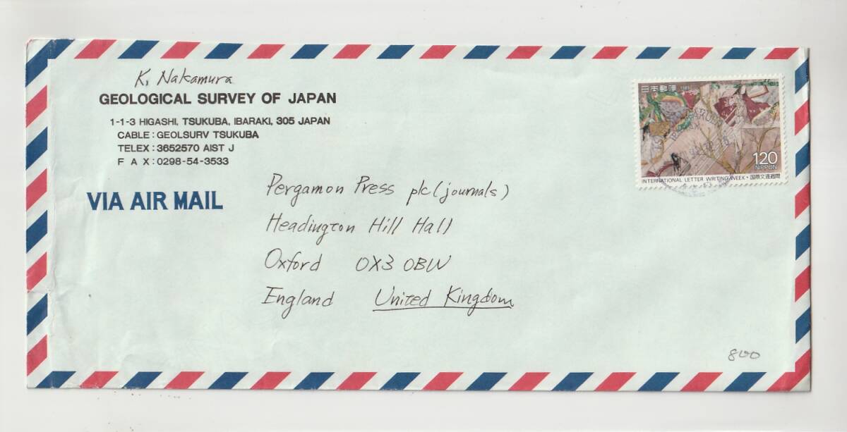 - ◆エンタイア2◆国際文通週間 1989 竹河 欧文印 局名不鮮明 航空便