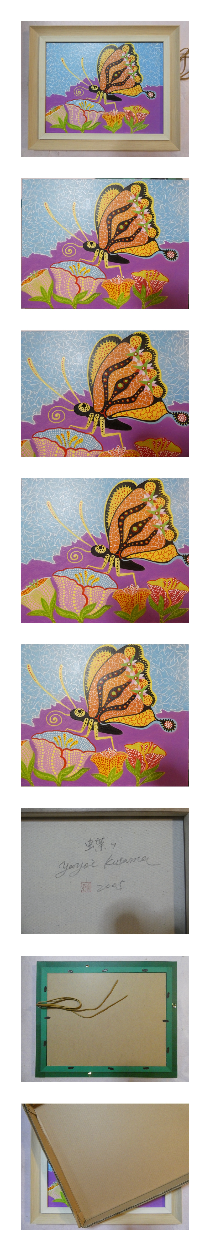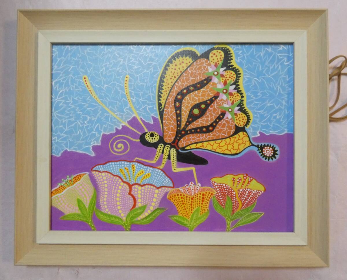 - ▽【模写】 絵画 静物 草間彌生「蝶々」〇サインあり 額縁付き 〇 F6