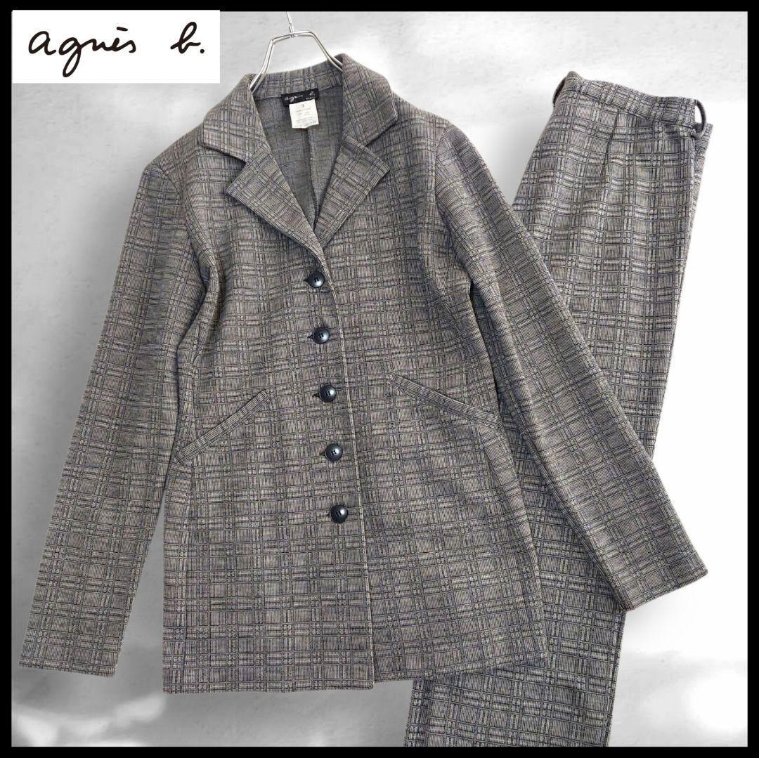 - 【大人気】agnes b. アニエスベー セットアップ パンツスーツ イタリヤ製 シングル ロング size3 グレー チェック ウール フランス製