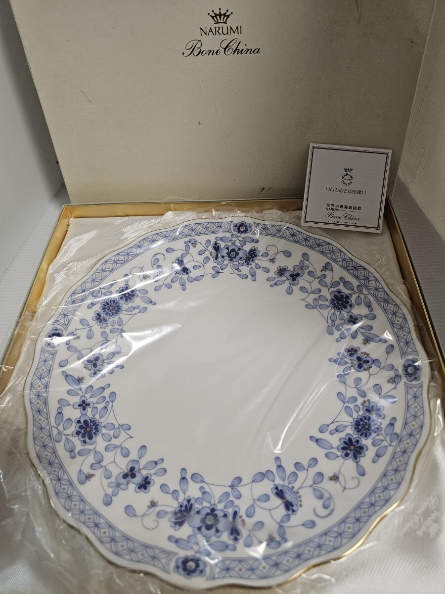 - 未使用 NARUMI ボーンチャイナ 青い花柄 大皿プレート ナルミ 花柄 食器 洋食器