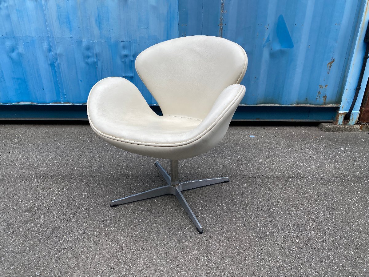 > スワンチェア アルネヤコブセン 本革 ホワイト white swanchair chair パーソナルチェア デザイナーズ家具 ジャンク 中古品
