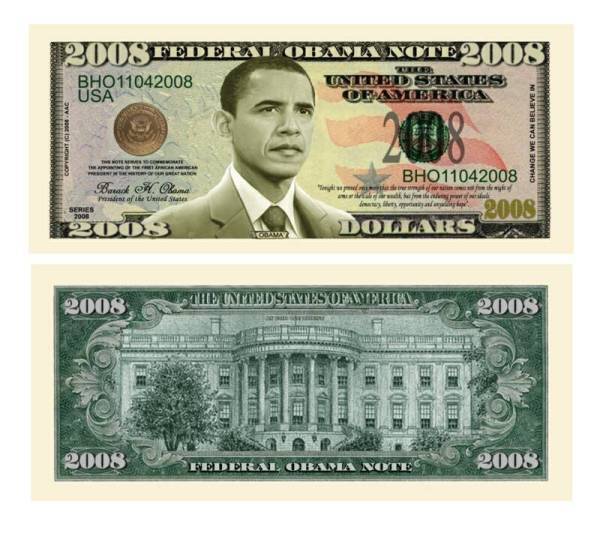 - ★バラック・オバマ2008年大統領選挙記念2008ドル・パロディ紙幣