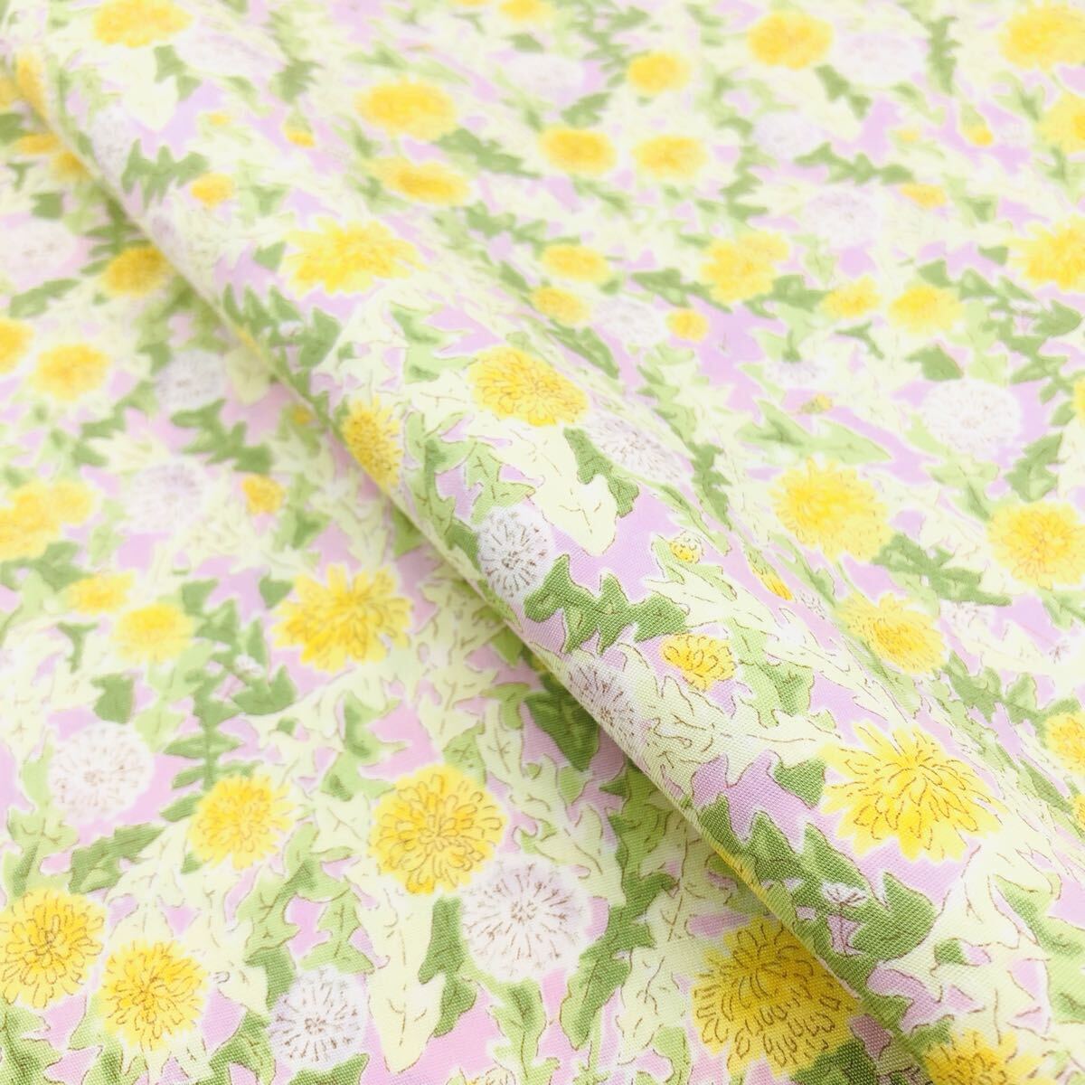 - 1m 日本製 ブロード たんぽぽ コットン 生地 はぎれ コットン 108×100 花柄 ボタニカル ピンク