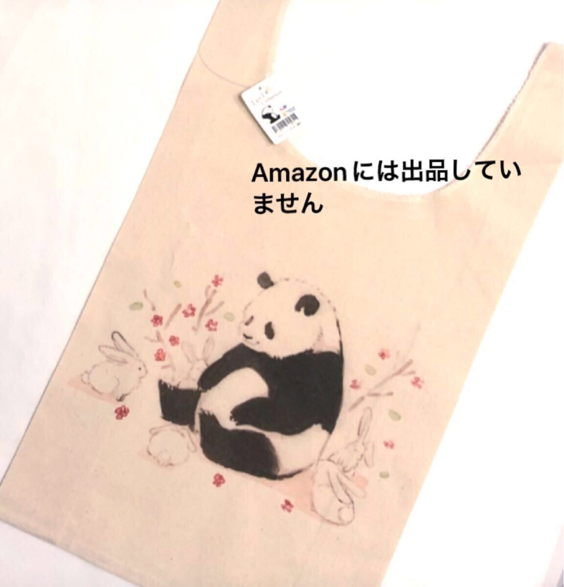 > 水墨画の様な優しいデザイン☆新品タグ付き☆2023 うさぎと戯れマルシェバッグ 王子動物園 タンタンとうさぎ 卯年 神戸 ジャイアントパンダ