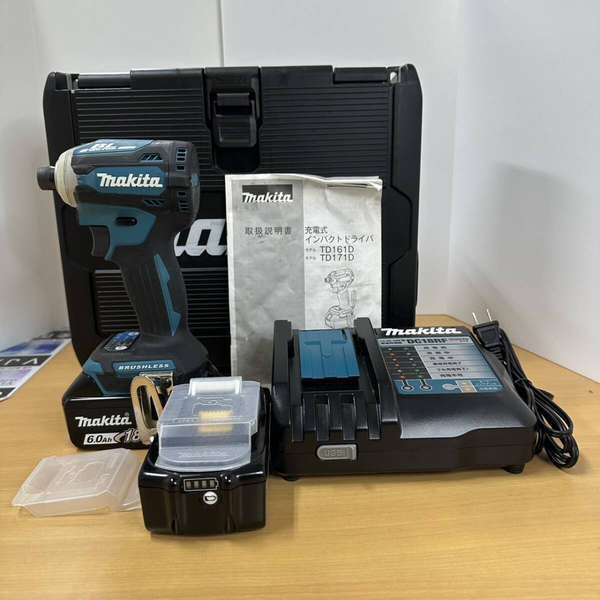 - 【中古】makita マキタ 充電式インパクトドライバー TD171DRGX 18V 6.0Ah バッテリー2個 充電器 説明書【美品】