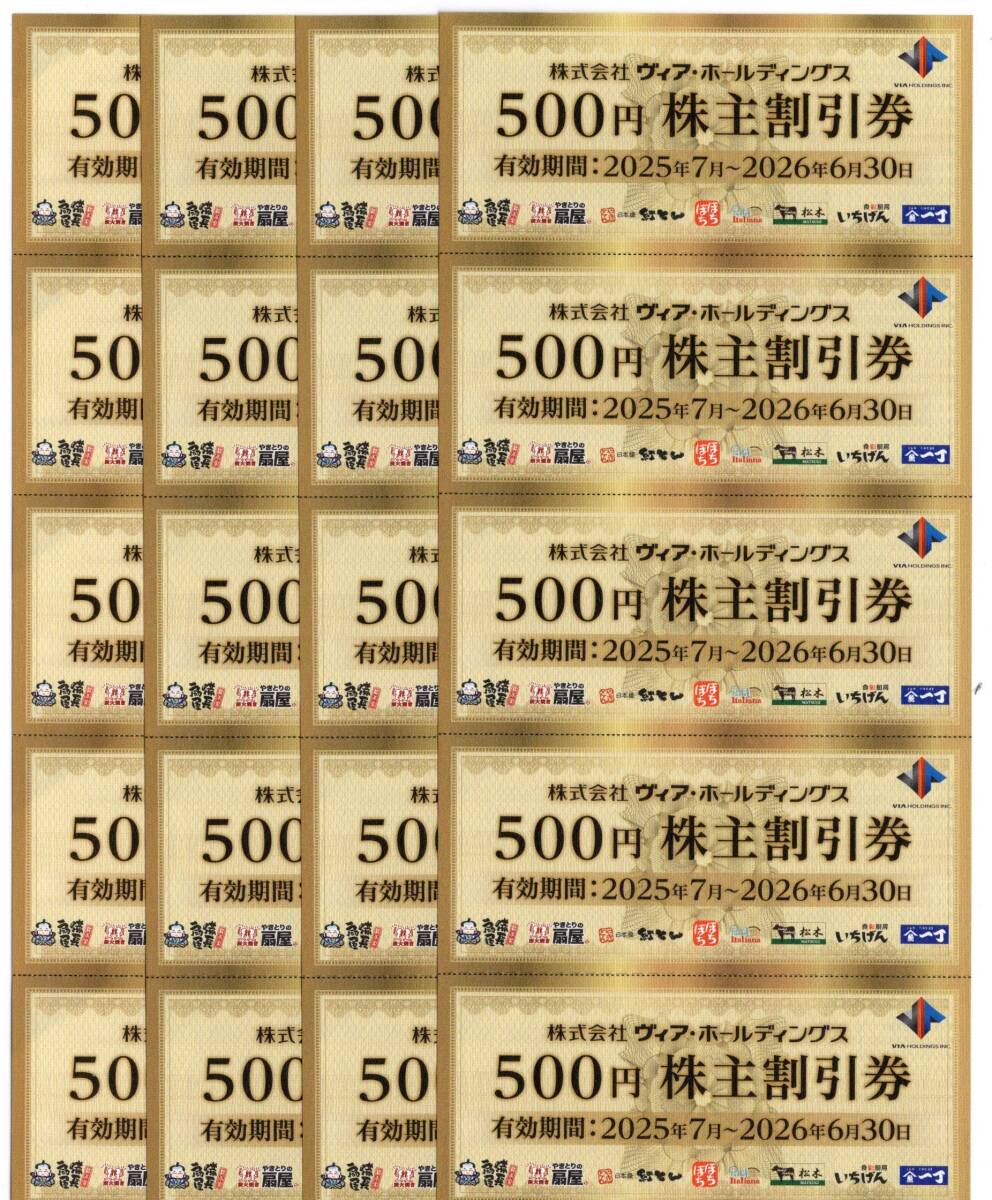 - ■ヴィアホールディングス 株主優待券 500円割引券 20枚セット(10,000円分)2026年6月末迄有効■