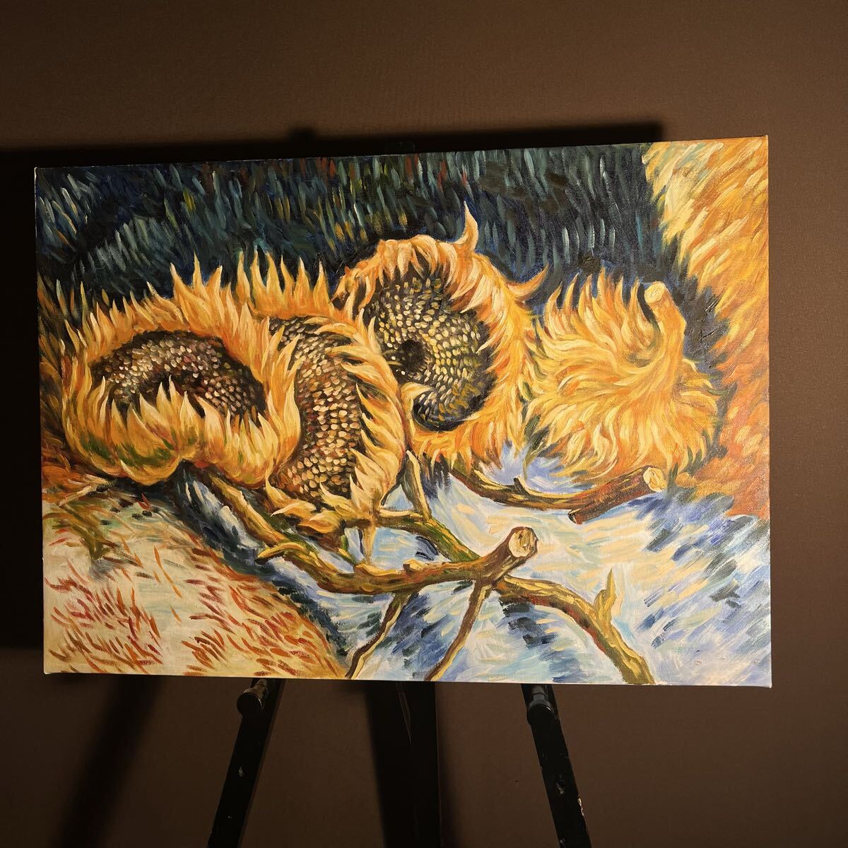 - ★秀作★ 手描き油絵 ゴッホ 4本の切ったひまわり 絵画 インテリア 油彩画
