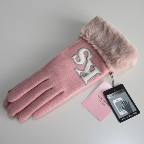 - 【Kate spade】ケイト スペード手袋 カシミヤ混 甲側裏地あったかボア スマホ対応 日本製/ピンク