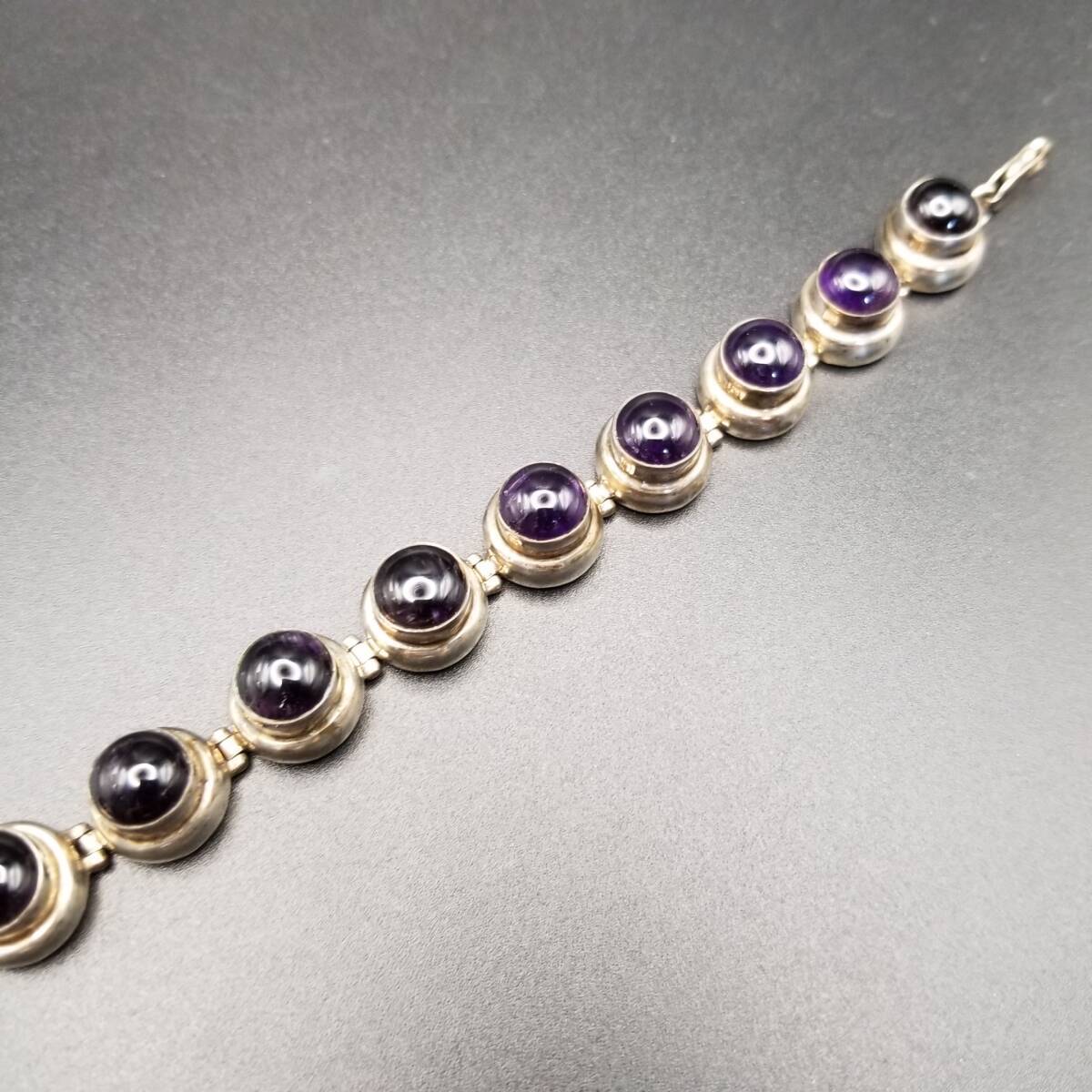 - アメジスト ラウンド カボション チェーン ゴージャス 925 シルバー ヴィンテージ テニス ブレスレット 銀 大ぶり 存在感 Y19-E