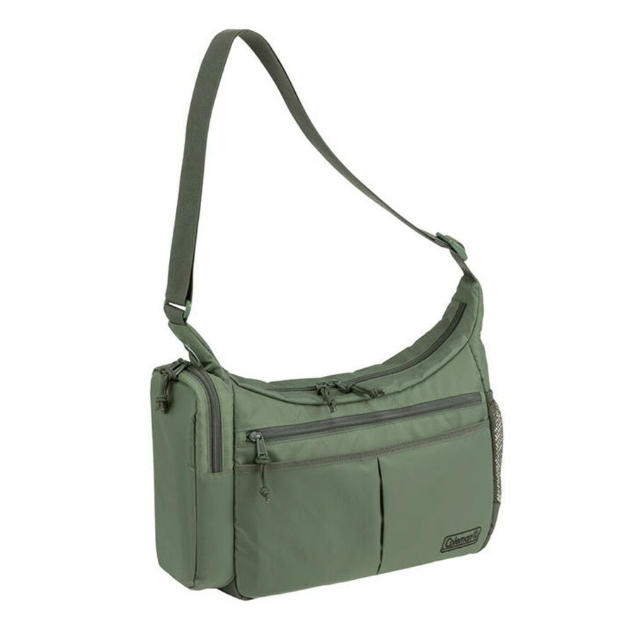男女兼用で使えるコールマン8Lショルダーバッグ。ショルダーにリフレクターを装備。夜間の安全性も配慮したつくりとなっています。生地にも撥水加工を施しており、雨でも安心してお使いいただけます。収納はA4サイズ対応。サイドのボトルクーラーポケットは、500mlペットボトルが収納可能。メインルームは、オーガナイザーポケットを完備。ペンや小物などの収納に便利です。デイリー使いから通学・旅行のサブバッグでも大活躍すること間違いなしです!